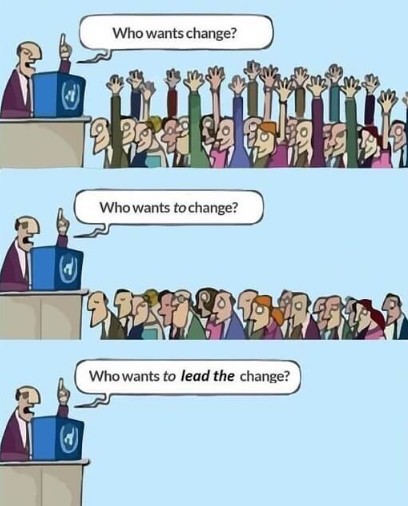 Also, people just don’t like change. There’s a legendary cartoon that describes the paradox of change: